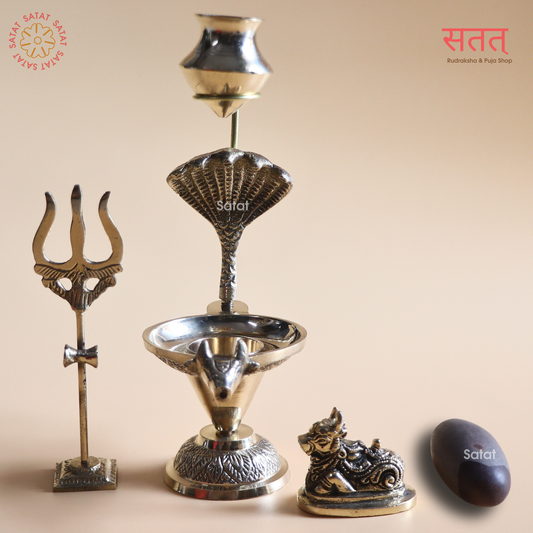 Narmadeshwar Shivling - Holy Brass Worship Set with Argha, Trishul, Galantika, Naag & Nandi (6 inches)| For Shiv Puja at Home | Shivling Height: 2.5 inches | SAVAN SpecialRegular price ₹ 1,795.00 INRRegular priceUnit price / per-