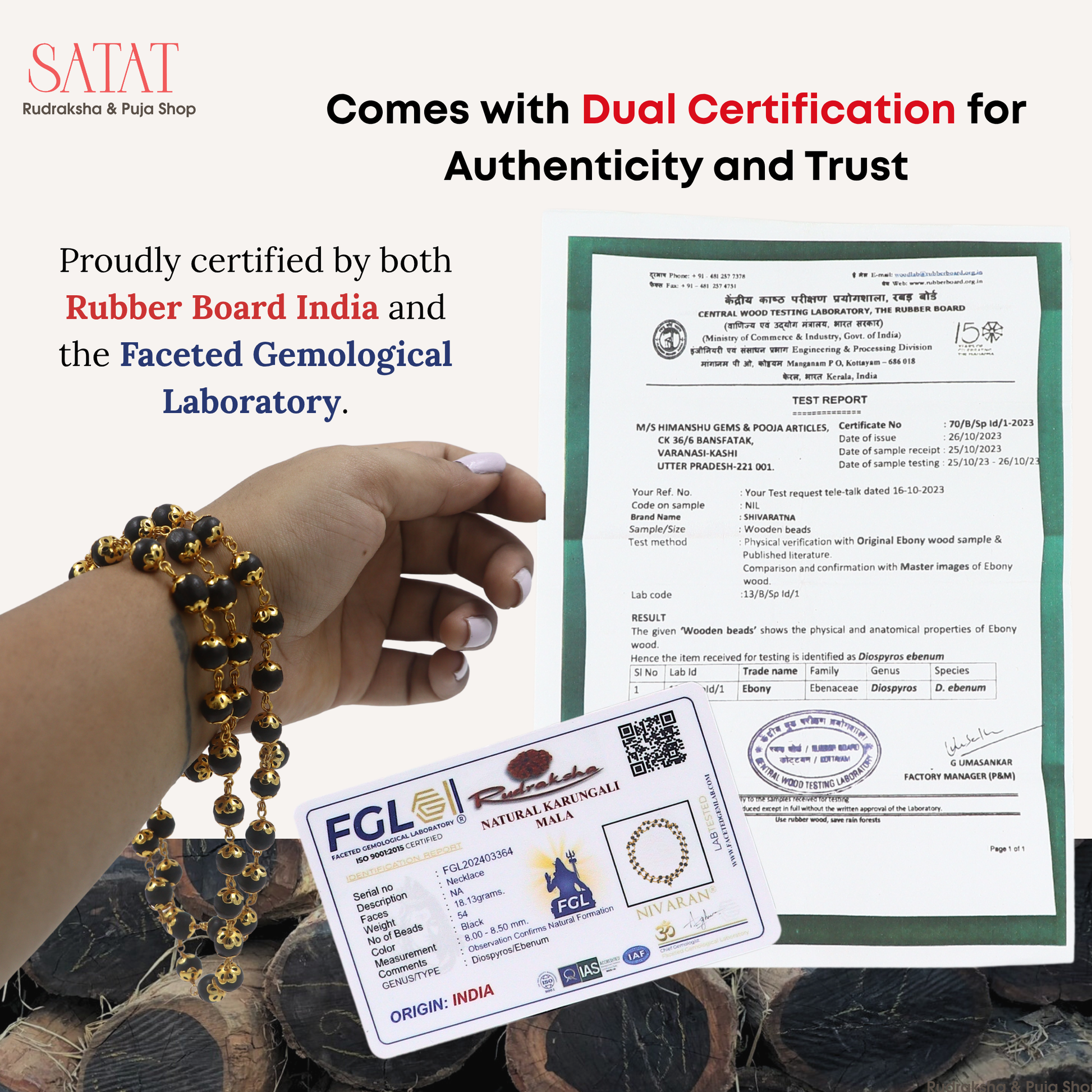 Discover the power of Karungali Malai (Black Ebony Prayer Mala) — now in a unique 54-bead variant, exquisitely encased in brass capping, and certified by the Rubber Board of India for authenticity and purity. This is not just a mala — it’s a sacred tool for devotion, concentration, and spiritual protection.