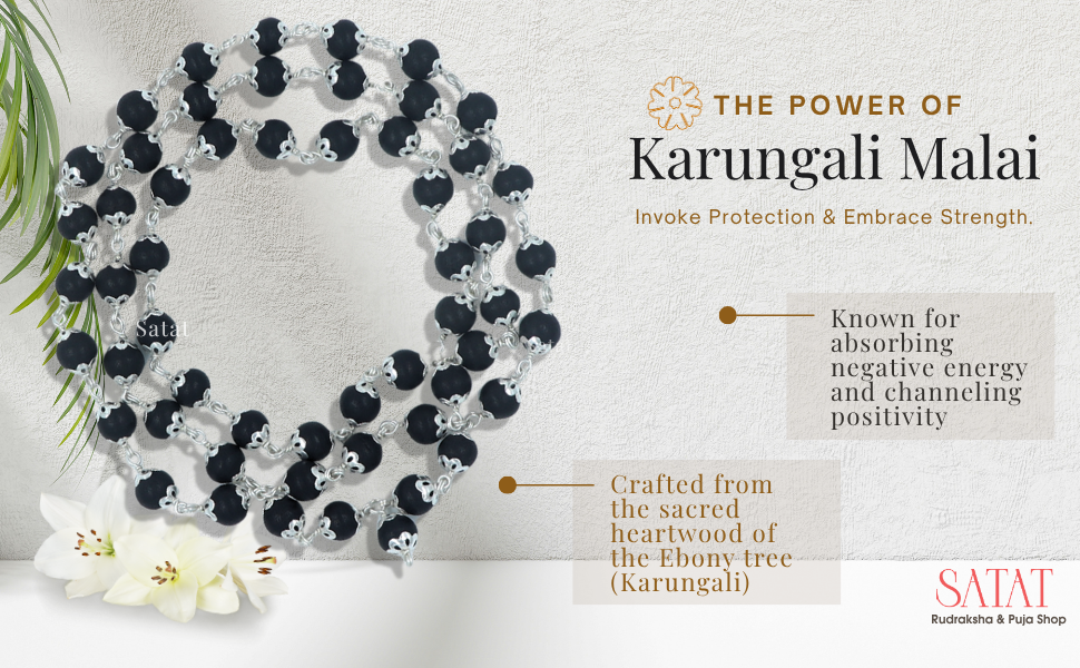This Karungali Malai supports a sense of calm, clarity, and focus during meditation or daily wear. Its natural ebony beads are believed to help in grounding thoughts and balancing energy, making it ideal for moments of reflection or mindful chanting. The brass capping adds not only elegance but also enhanced durability, keeping the mala intact for long-term use. A perfect companion for those seeking peace, positivity, and disciplined practice in their spiritual journey.