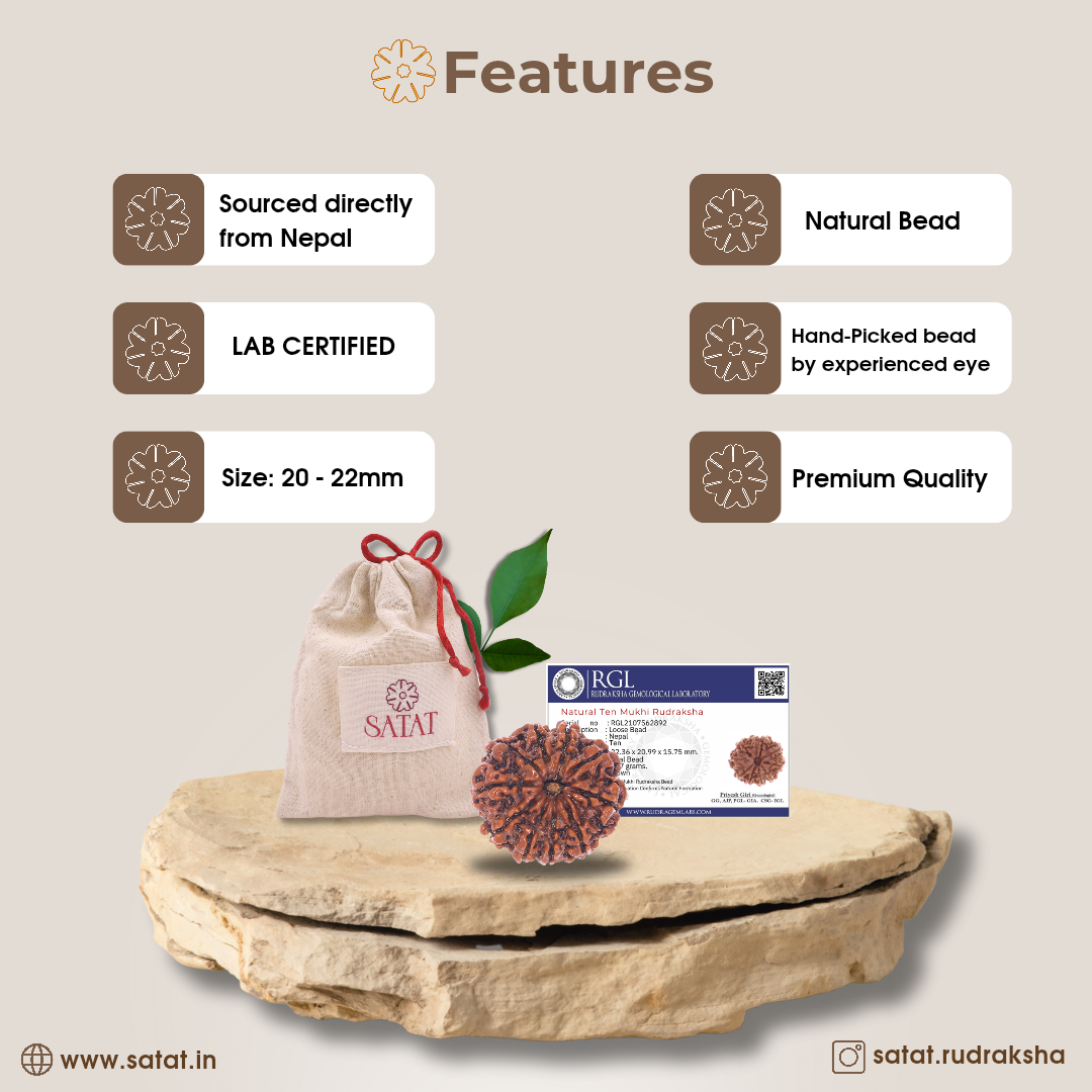 Enhance your spiritual practice with our original Nepalese 10 mukhi Rudraksha bead, certified by RGL, an ISO-recognized lab. This powerful bead has multiple benefits, including balancing energy and removing Vastu doshas. Elevate your meditation with this authentic and certified Rudraksha bead.