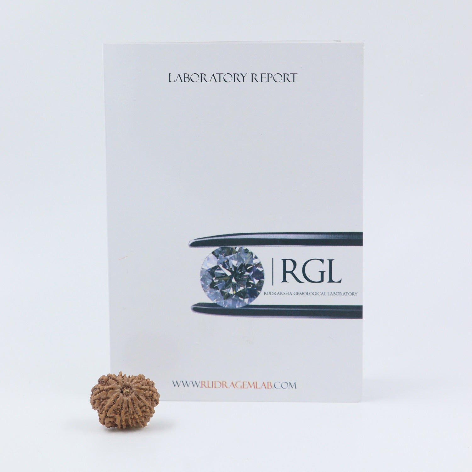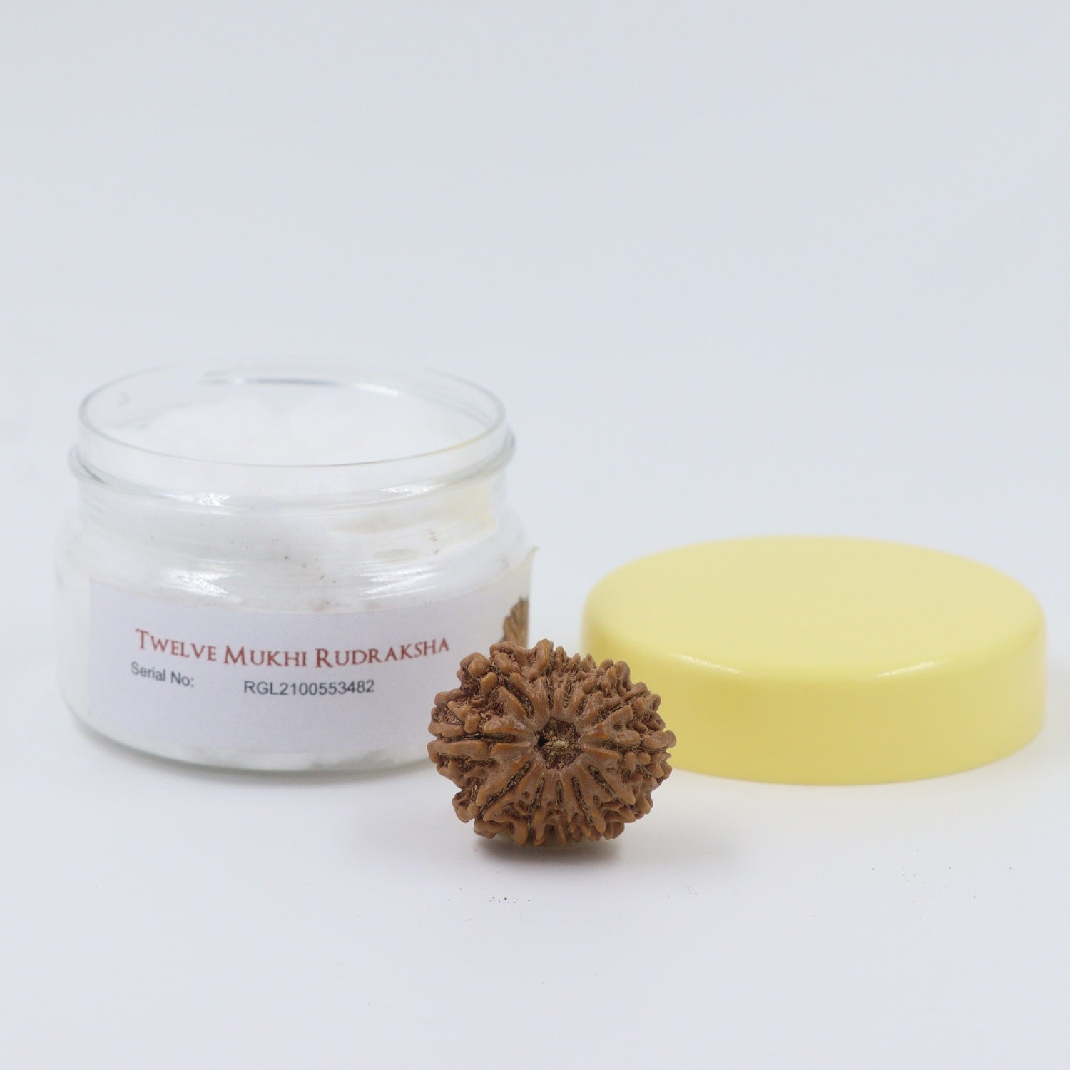 Exclusive Nepalese twelve-faced rudraksha bead with a guarantee of authenticity from a reputed ISO-certified lab. Twelve Mukhi Rudraksha finds its references in many ancient Hindu scriptures and is blessed by the Sun God.