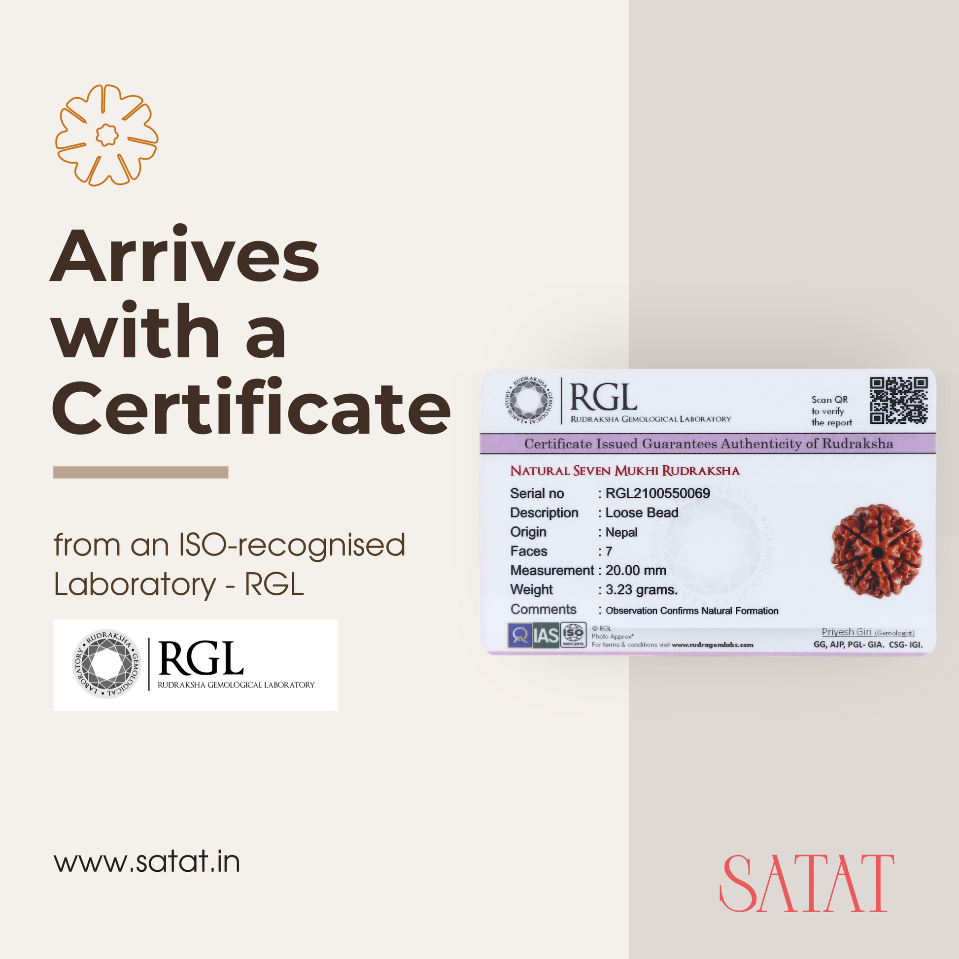 This sacred set from SATAT combines the strength of two revered Rudraksha beads. The centerpiece is a sacred 7 Mukhi Nepal Rudraksha pendant in a pure silver cap. The seven-faced rudraksha, symbolizing the sapt-rishis and chakras, is believed to aid your career advancements, spiritual growth, and inner peace.