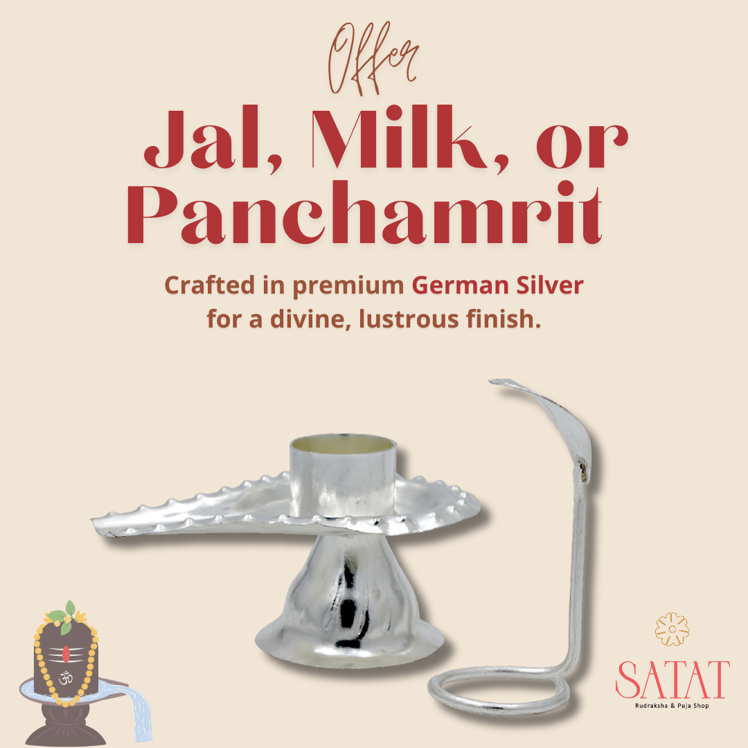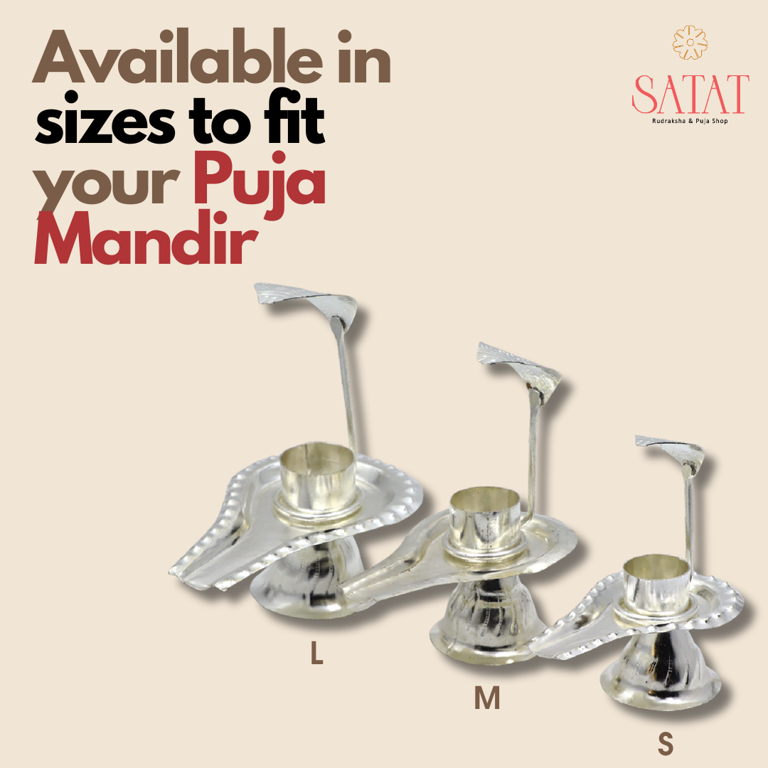 Bring spiritual energy into your home with this German Silver Argha. Crafted with intricate details, it features a snake coiled around a beautiful Shivling for divine blessings. Place a shivling on top of it to fill your room with a divine blessing.