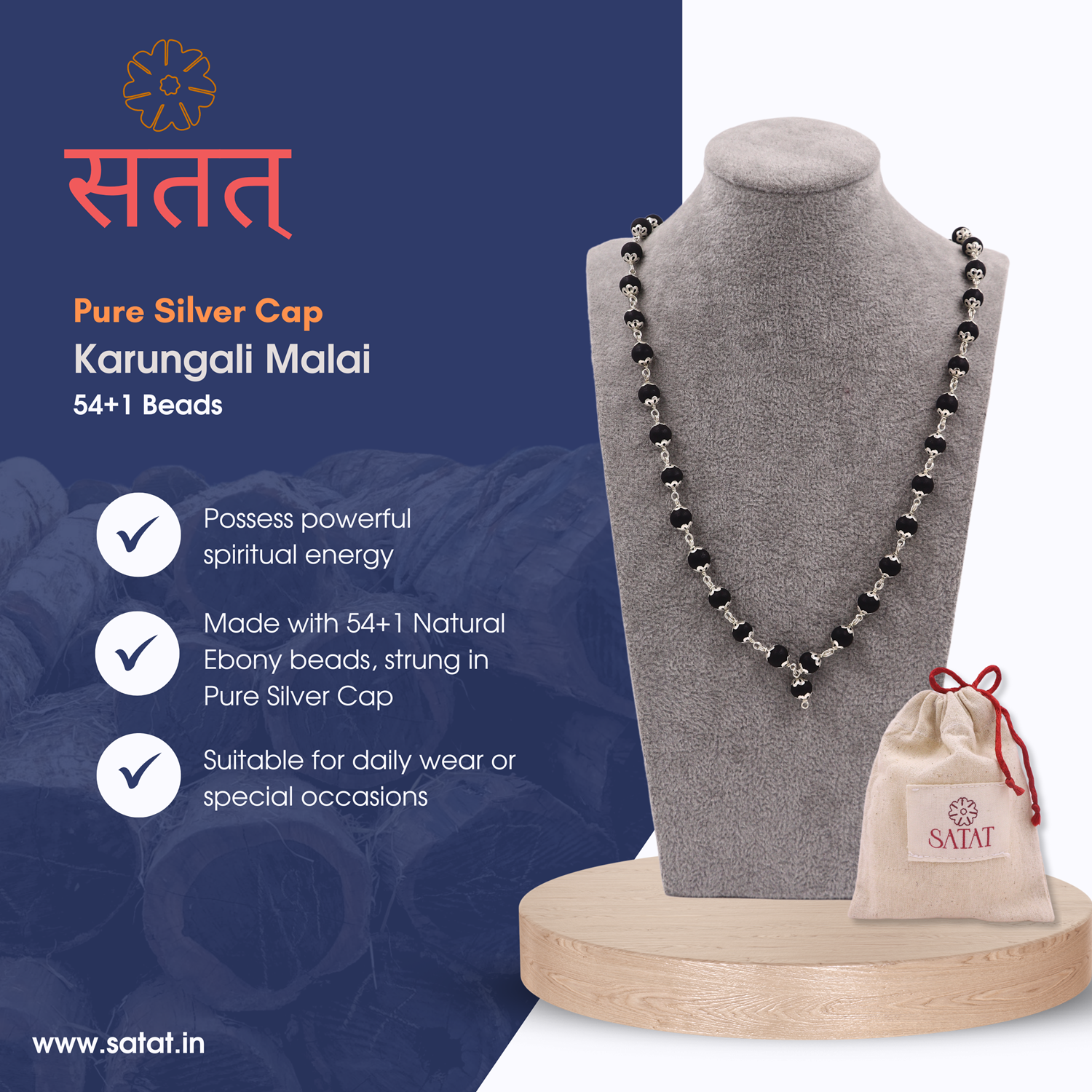 Karungali Malai in Silver Cap with Certificate | Made with Natural Ebony Wood