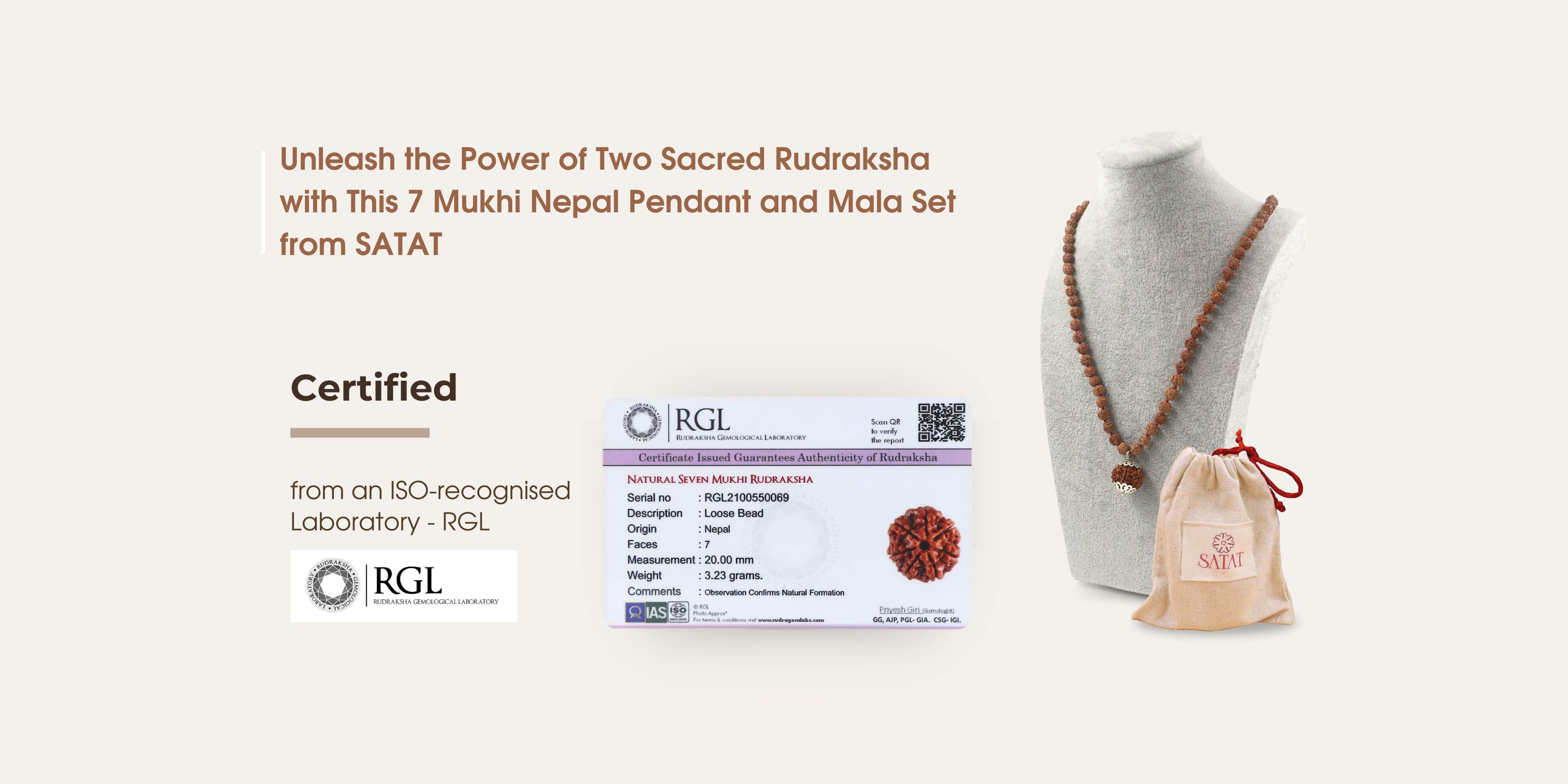 SATAT 7 Mukhi Rudraksha Pendant (Nepal) with 108 bead 5 Mukhi (Indonesian) Mala Set | Pure SIlver Cap & Certified