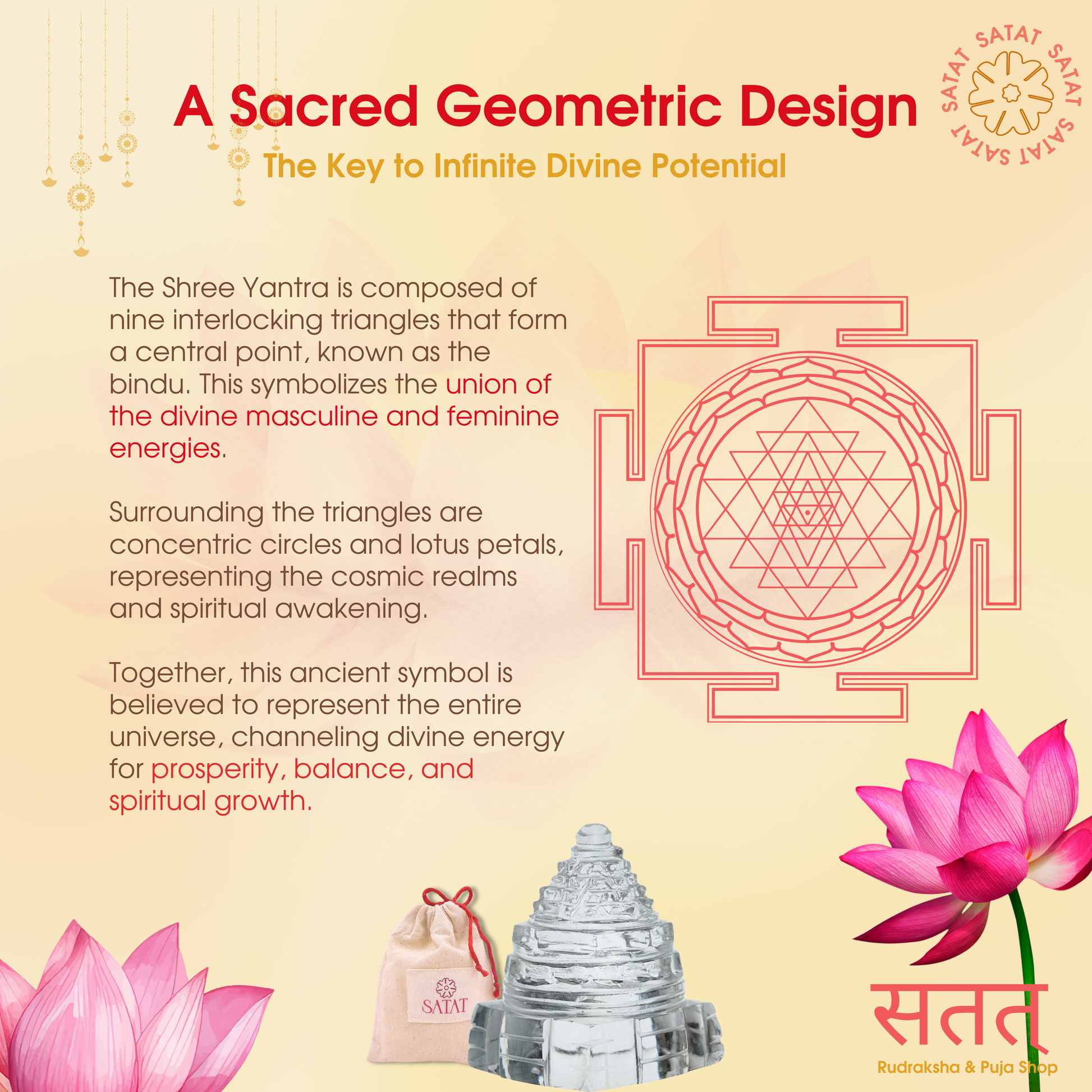 SATAT SphatiK Shree Yantra Original Crystal, 80-100g, 4-6 cm, for Lakshmi Puja and Meditation on Diwali